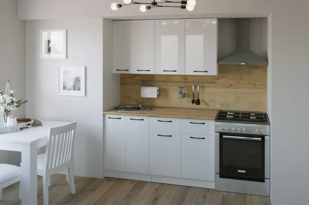 Ширина, мм 1400Глубина, мм 600Высота столов, мм850Высота шкафов, мм 720Материал ЛДСПЦвет короба БелыйЦвет короба открытых модулей БелыйЦвет верхних фасадов Белый глянецЦвет нижних фасадов Белый глянецЦвет столешницы Дуб бунраттиРучка Скоба антрацитКоличество упаковок, шт. 5