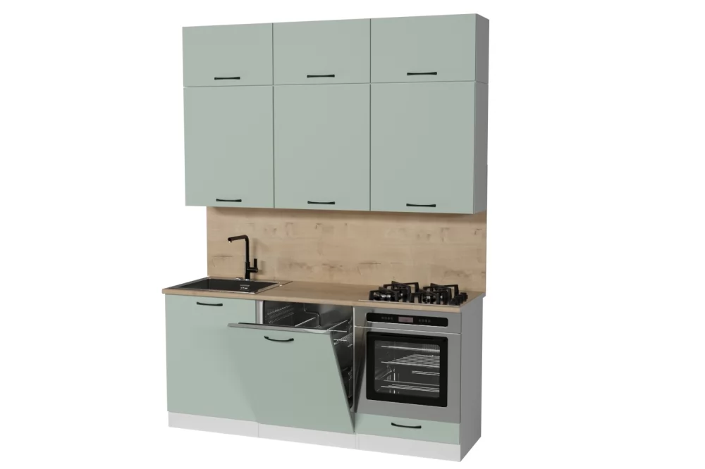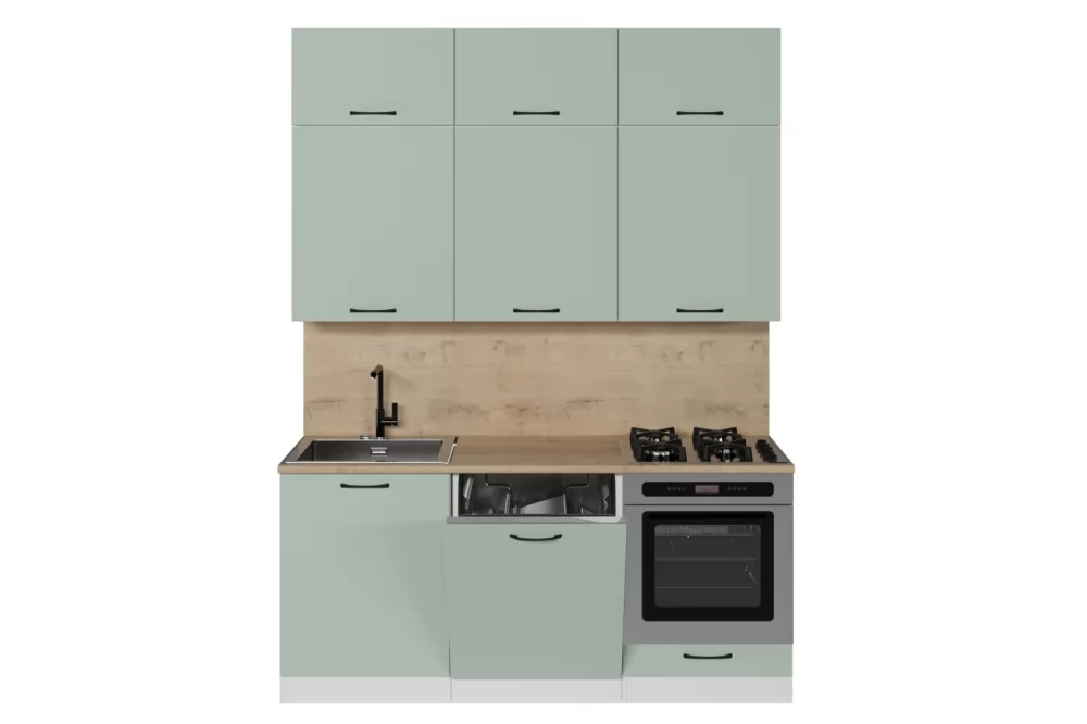 Мойки, смесители, посудосушители, варочные панели, духовые шкафы, плиты, вытяжки в комплекты гарнитуров не входят.