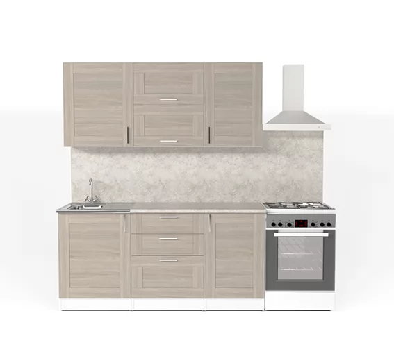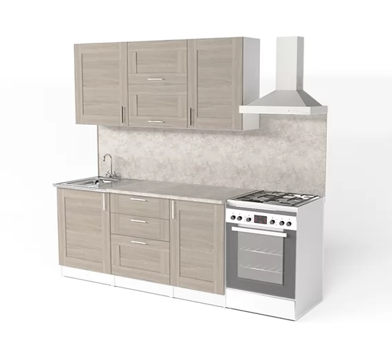Кухонный гарнитур Лира экстра из ЛДСП в модном цвете "Квадро шимо светлый" впишется в современный дизайн интерьера. Подойдет как для частного дома, так и для небольшой квартиры. Напольные и подвесные шкафы позволят разместить всю кухонную утварь. Гарнитур состоит из набора шкафов, которые органично комбинируются между собой. Ящики, полки, навесные шкафы, тумбы и пеналы можно менять местами, создавая практичное рабочее пространство.