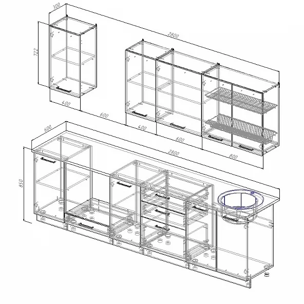 | *Ширина гарнитура | 2800 мм |