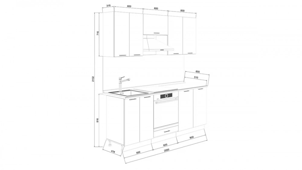 Габаритный размер набора модулей без учета газовой плиты: 2 000
