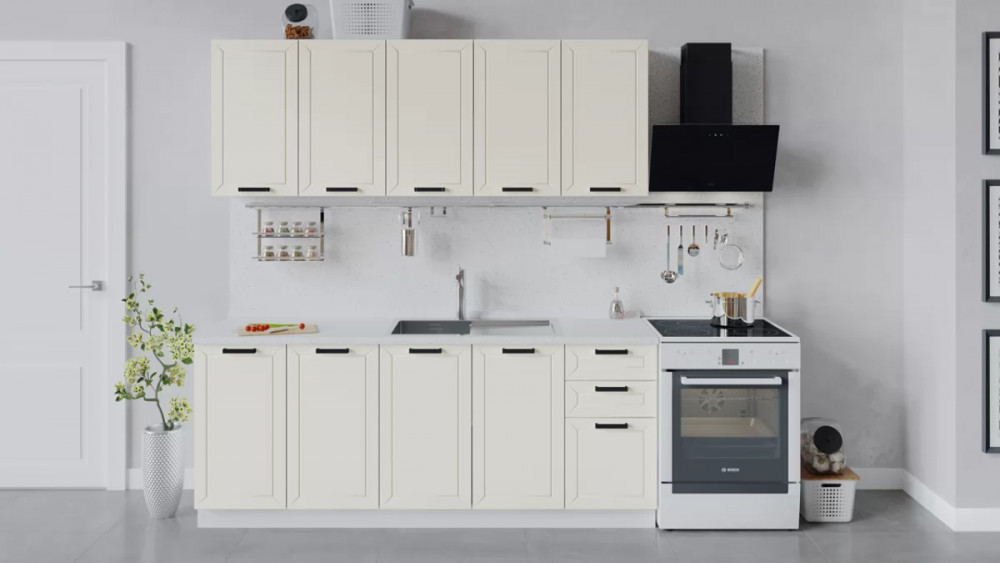 В стоимость не включено: Стеновая панель, столешница, доводчики, бытовая техника, мойка, смеситель, аксессуары