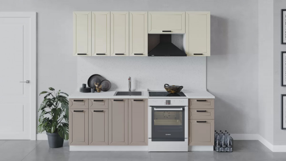 Кухонный гарнитур «Лорас» длиной 200 см Дуб крафт золотой/Холст брюле/Холст латте