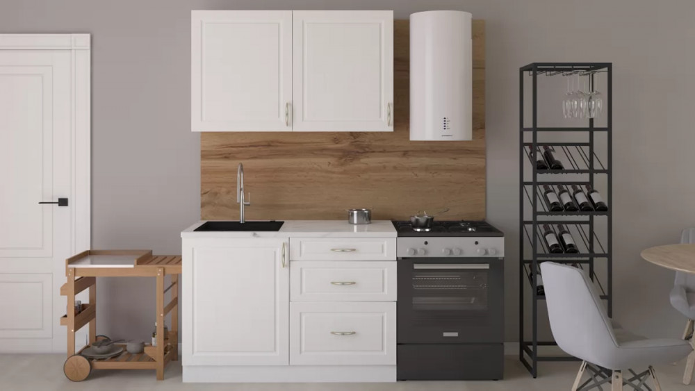 В стоимость не включено: Стеновая панель, столешница, доводчики, цоколь, бытовая техника, мойка, смеситель, аксессуары.