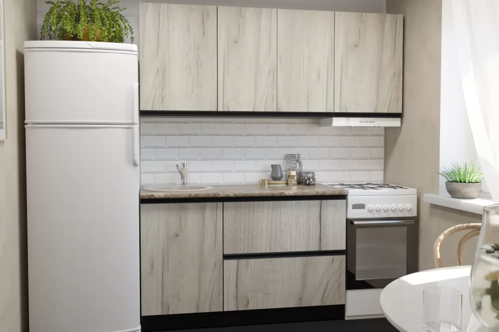 Прямые готовые кухни рациональны для маленьких квартир. При прямой планировке кухни важно предусмотреть место для холодильника и учесть его габариты. Если ваша кухня объединена с гостиной, или же настолько просторная, что позволяет сделать полноценную обеденную зону для большой семьи, то смело выбирайте линейную конфигурацию кухни.