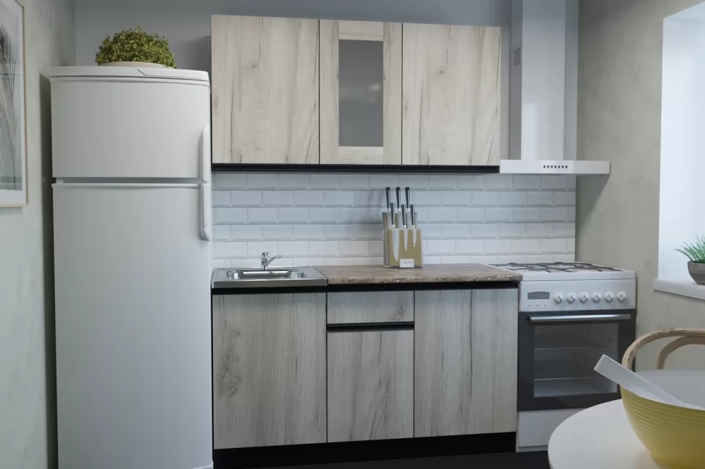 Прямые готовые кухни рациональны для маленьких квартир. При прямой планировке кухни важно предусмотреть место для холодильника и учесть его габариты. Если ваша кухня объединена с гостиной, или же настолько просторная, что позволяет сделать полноценную обеденную зону для большой семьи, то смело выбирайте линейную конфигурацию кухни.