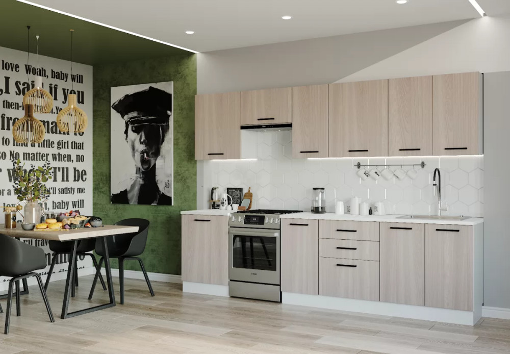 Модульная кухня «Лорас» Дуб крафт золотой/Холст брюле/Холст латте