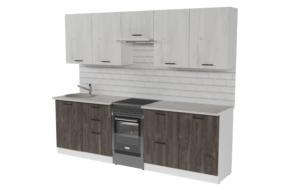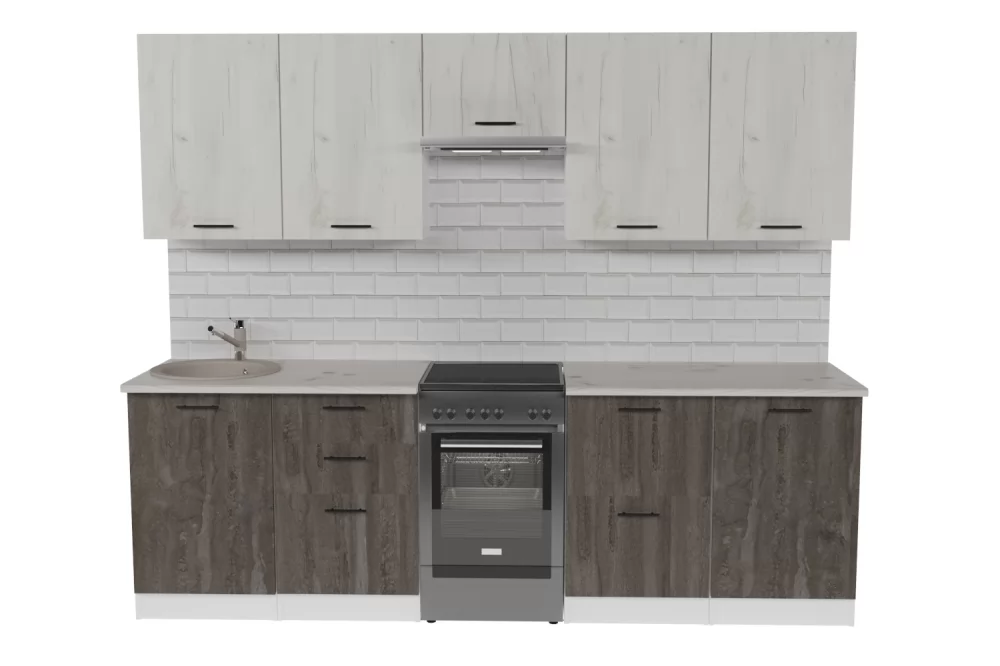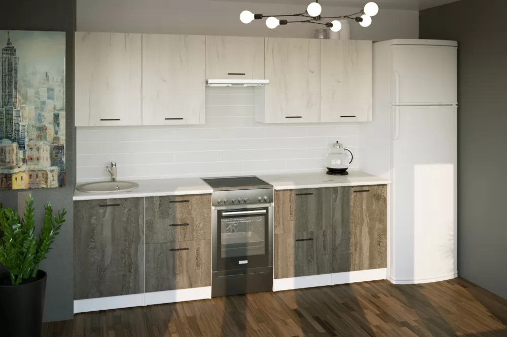 Кухонный гарнитур Сиена из ЛДСП идеально впишется в современный дизайн интерьера. Подойдет как для частного дома, так и для небольшой квартиры. Напольные и подвесные шкафы позволят разместить всю кухонную утварь. Гарнитур состоит из набора шкафов, которые органично комбинируются между собой. Ящики, полки, навесные шкафы, тумбы и пеналы можно менять местами, создавая практичное рабочее пространство.