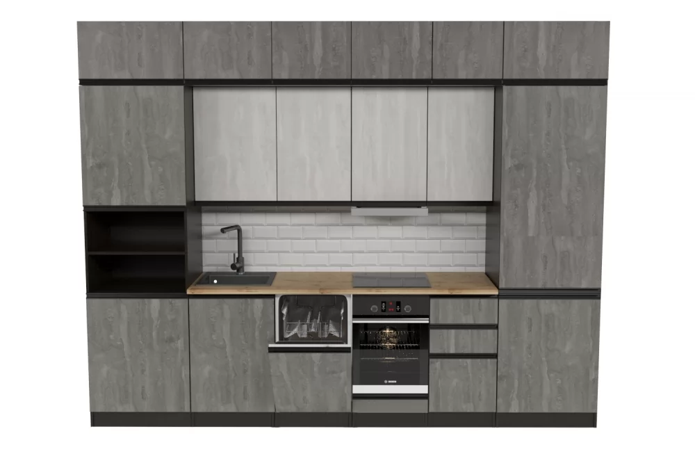 Кухонный гарнитур Симфония люкс из ЛДСП в модном цвете "Бетон светлый" впишется в современный дизайн интерьера. Подойдет как для частного дома, так и для небольшой квартиры. Напольные и подвесные шкафы позволят разместить всю кухонную утварь. Гарнитур состоит из набора шкафов, которые органично комбинируются между собой. Ящики, полки, навесные шкафы, тумбы и пеналы можно менять местами, создавая практичное рабочее пространство.