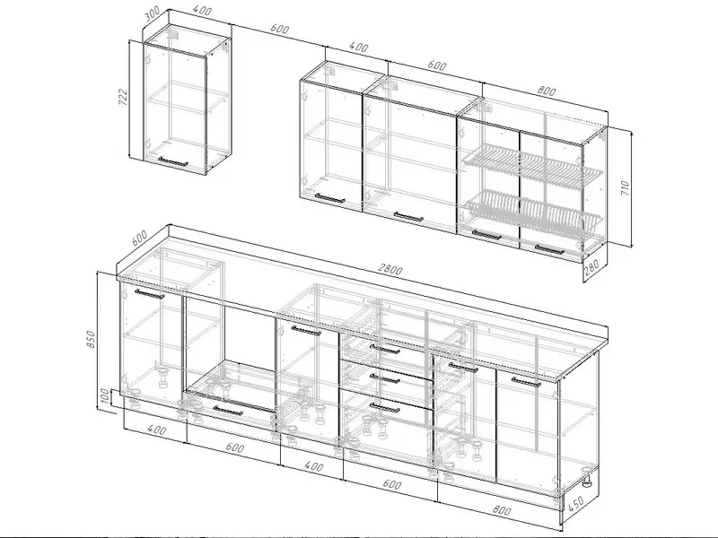 | *Ширина гарнитура | 2800 мм |