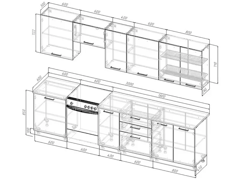 | *Ширина гарнитура | 3000 мм |