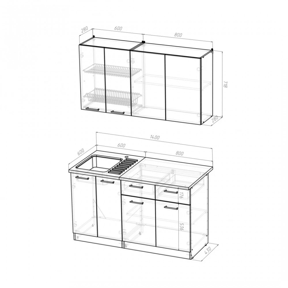| *Ширина гарнитура | 1400 мм |