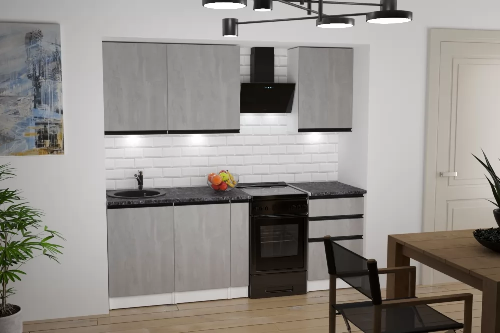 Кухонный гарнитур Сюита из ЛДСП в модном цвете "Бетон светлый" впишется в современный дизайн интерьера. Подойдет как для частного дома, так и для небольшой квартиры. Напольные и подвесные шкафы позволят разместить всю кухонную утварь. Гарнитур состоит из набора шкафов, которые органично комбинируются между собой. Ящики, полки, навесные шкафы, тумбы и пеналы можно менять местами, создавая практичное рабочее пространство.