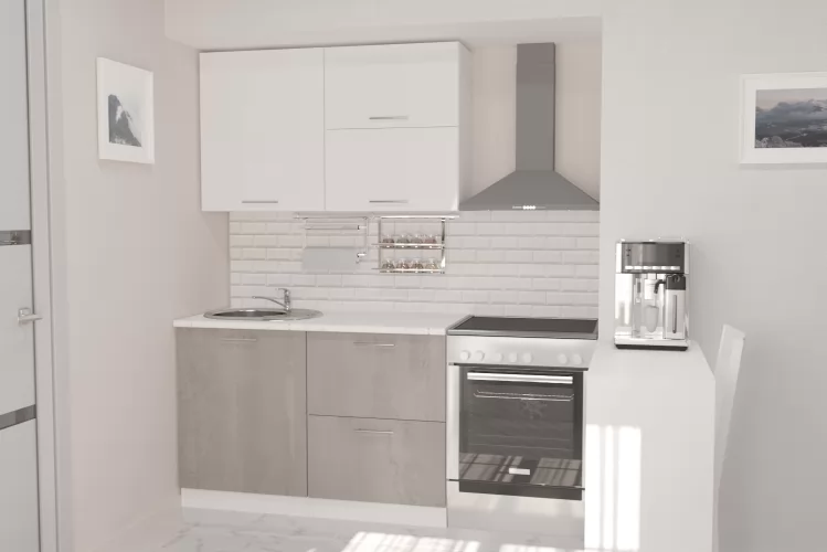 Ширина, мм 1200Глубина, мм 600Высота столов, мм 850Высота шкафов, мм 720Материал ЛДСПЦвет короба БелыйЦвет верхних фасадов Белый глянецЦвет нижних фасадов Бетон светлыйЦвет столешницы Мрамор марквина белыйРучка РейлингКоличество упаковок, шт. 5