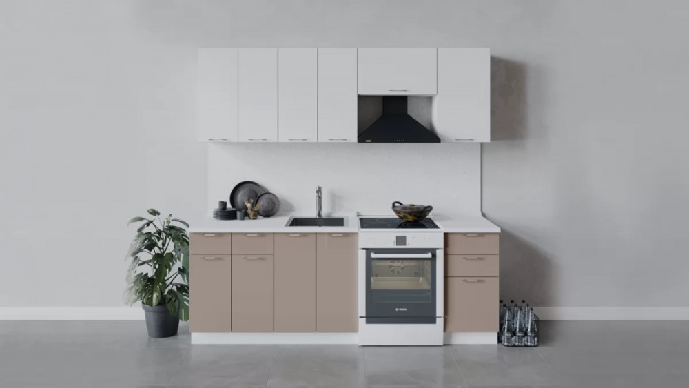 Кухонный гарнитур «Белладжио» длиной 160 см Белый, Софт панакота, Софт капучино