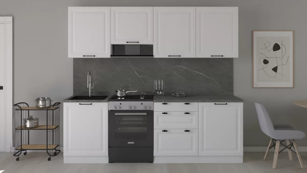 В СТОИМОСТЬ НЕ ВКЛЮЧЕНО: СТЕНОВАЯ ПАНЕЛЬ, СТОЛЕШНИЦА, БЫТОВАЯ ТЕХНИКА, МОЙКА, СМЕСИТЕЛЬ, АКСЕССУАРЫ.