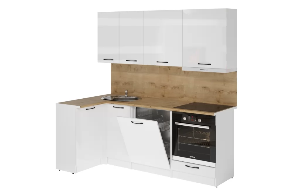 Ширина, мм 1100х2000Глубина, мм 600/400Высота столов, мм 850Высота шкафов, мм 720Материал ЛДСПЦвет короба БелыйЦвет короба открытых модулей БелыйЦвет верхних фасадов Белый глянецЦвет нижних фасадов Белый глянецЦвет столешницы Дуб бунраттиРучка Скоба антрацитКоличество упаковок, шт. 9Современный гарнитур для кухни учитывает все модные тенденции и будет выигрышно смотреться как в лофт-пространстве, так и в стиле модерн.Кухонный гарнитур из ЛДСП в модном цвете впишется в современный дизайн интерьера. Подойдет как для частного дома, так и для небольшой квартиры. Напольные и подвесные шкафы позволят разместить всю кухонную утварь. Гарнитур состоит из набора шкафов, которые органично комбинируются между собой. Ящики, полки, навесные шкафы, тумбы и пеналы можно менять местами, создавая практичное рабочее пространство.КомплектацияВ стандартную комплектацию кухонных гарнитуров входит:- подробная инструкция по сборке;- саморезы, конфирматы и прочие метизы необходимые для сборки;- петли накладные с евровинтом;- выдвижные механизмы – метабокс;- ручки;- опоры мебельные.Мойки, смесители и посудосушители в комплекты гарнитуров не входят.