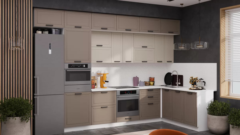 Кухонный гарнитур угловой Каппучино-1000х1800 МДФ столешница 26 мм