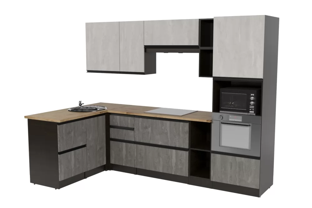 Кухонный гарнитур Симфония мега прайм из ЛДСП в модном цвете "Бетон светлый" впишется в современный дизайн интерьера. Подойдет как для частного дома, так и для небольшой квартиры. Напольные и подвесные шкафы позволят разместить всю кухонную утварь. Гарнитур состоит из набора шкафов, которые органично комбинируются между собой. Ящики, полки, навесные шкафы, тумбы и пеналы можно менять местами, создавая практичное рабочее пространство.