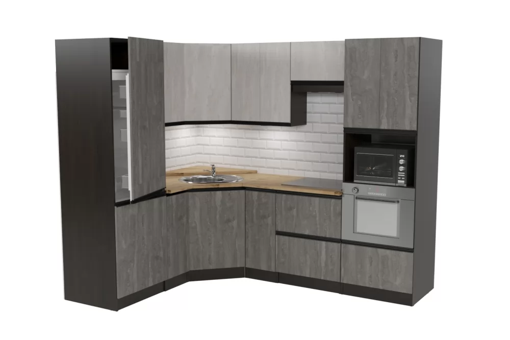 Готовые угловые кухни прекрасно экономят место, увеличивая рабочую зону. Если у вас квадратная или прямоугольная кухня, то угловая планировка кухни позволит рассмотреть множество вариаций размещения холодильника, микроволновки, посудомоечной машины и крупной бытовой техники. Выбирайте угловую кухню от производителя, если вам требуется много места для хранения, комната является проходной и нужна большая рабочая зона.