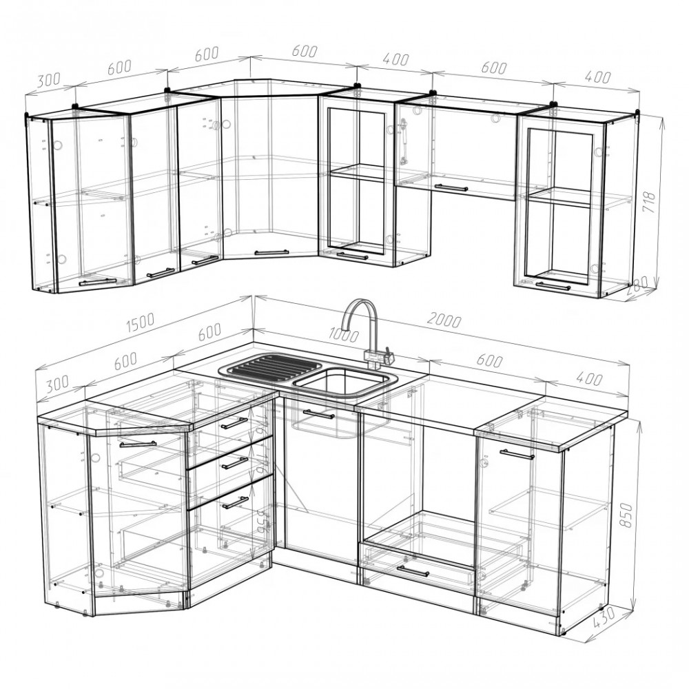 Кухонный гарнитур Симона мега прайм 2000*1500 мм