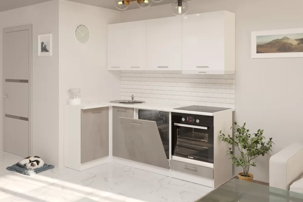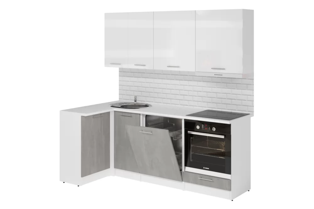 Ширина, мм 1100х2000Глубина, мм 600/400Высота столов, мм 850Высота шкафов, мм 720Материал ЛДСПЦвет короба БелыйЦвет короба открытых модулей БелыйЦвет верхних фасадов Белый глянецЦвет нижних фасадов Бетон светлыйЦвет столешницы Мрамор марквина белыйРучка РейлингКоличество упаковок, шт. 9Стильные и функциональные готовые кухни - это не только комфорт и уют в доме, но и эстетика. Кухонный гарнитур из ЛДСП в модном цвете впишется в современный дизайн интерьера. Подойдет как для частного дома, так и для квартиры. Напольные и подвесные шкафы позволят разместить всю кухонную утварь. Гарнитур состоит из набора шкафов, которые органично комбинируются между собой. Ящики, полки, навесные шкафы, тумбы и пеналы можно менять местами, создавая практичное рабочее пространство.КомплектацияВ стандартную комплектацию кухонных гарнитуров входит:- подробная инструкция по сборке;- саморезы, конфирматы и прочие метизы необходимые для сборки;- петли накладные с евровинтом;- выдвижные механизмы – метабокс;- ручки;- опоры мебельные.Мойки, смесители и посудосушители в комплекты гарнитуров не входят.