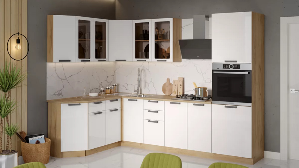 Модульная кухня «Детройт» Дуб крафт золотой/Белый глянец/Дуб крафт золотой