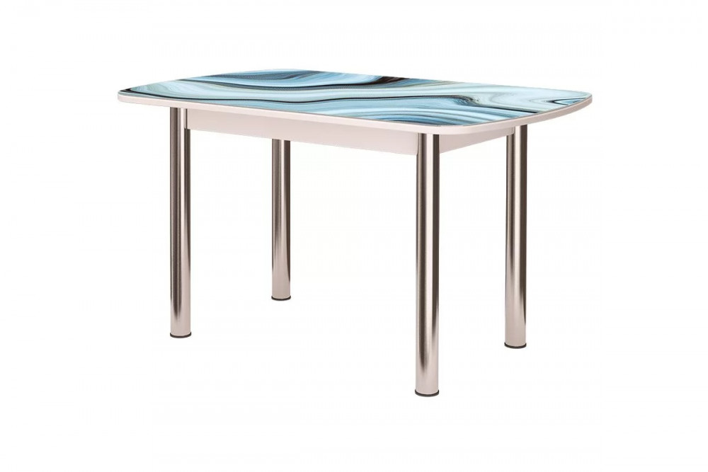 Стол круглый Бостон раздвижной, фотопечать Жемчуг/белый/хром брифинг