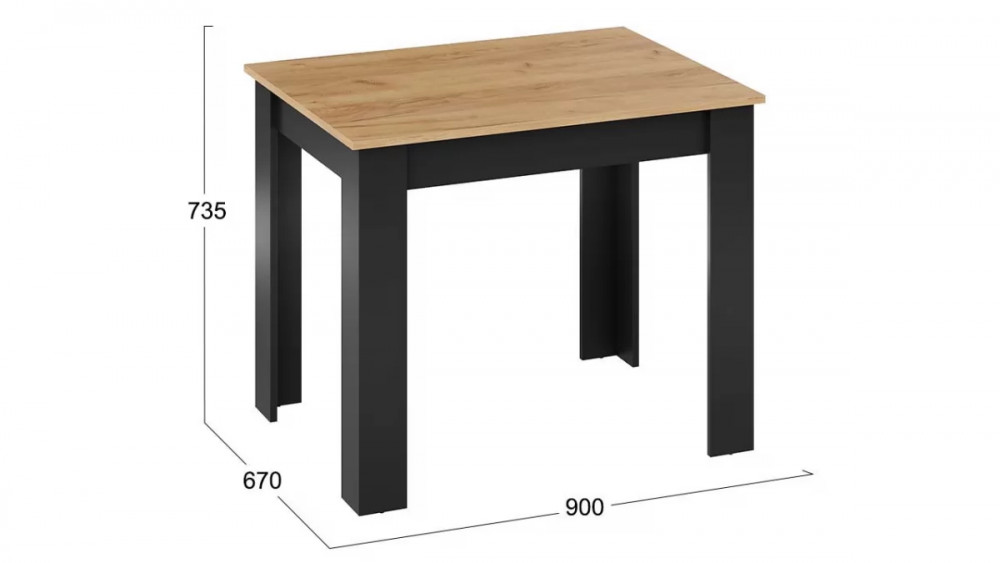 Механизм трансформации: Нет Назначение: Мебель для работы и приема пищи Гарантийный срок: 24 месяца Комната использования: Кухня, Гостиная Стиль: Современный Габаритная длина: 900 Тип: Стол Расположение: Напольный Материал ножек/опоры: ЛДСП Материал подстолья: ЛДСП Дополнительная информация: Расстояние между опорами по длине стола - 715 мм, по ширине - 517 мм. Производство: Россия Габаритная ширина: 670 Габаритная высота: 735 Форма предмета: Прямоугольный Модель: Промо тип 1 Срок службы: 5 лет Цвет: Черный, Дуб Крафт золотой Материал столешницы: ЛДСП Материал кромки столешницы: ПВХ Материал кромки подстолья: ПВХ Материал кромки ножек/опоры: ПВХ Наличие механизма раскладки: Нет Количество опор: 4 Наличие спального места: Нет
