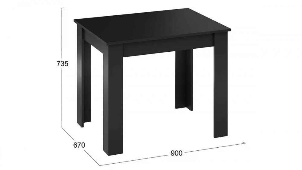 Механизм трансформации: Нет Назначение: Мебель для работы и приема пищи Гарантийный срок: 24 месяца Комната использования: Кухня, Гостиная Стиль: Современный Габаритная длина: 900 Тип: Стол Расположение: Напольный Материал ножек/опоры: ЛДСП Материал подстолья: ЛДСП Дополнительная информация: Расстояние между опорами по длине стола - 715 мм, по ширине - 517 мм. Производство: Россия Габаритная ширина: 670 Габаритная высота: 735 Форма предмета: Прямоугольный Модель: Промо тип 1 Срок службы: 5 лет Цвет: Черный Материал столешницы: ЛДСП Материал кромки столешницы: ПВХ Материал кромки подстолья: ПВХ Материал кромки ножек/опоры: ПВХ Наличие механизма раскладки: Нет Количество опор: 4 Наличие спального места: Нет