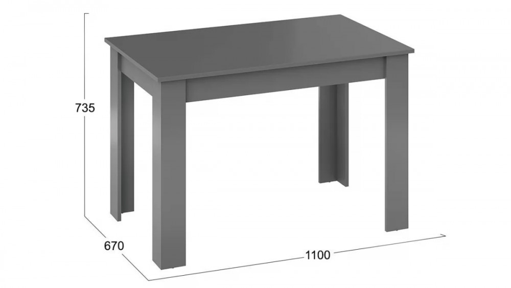 Механизм трансформации: Нет Назначение: Мебель для работы и приема пищи Гарантийный срок: 24 месяца Комната использования: Кухня, Гостиная Стиль: Современный Габаритная длина: 1 100 Тип: Стол Расположение: Напольный Материал ножек/опоры: ЛДСП Материал подстолья: ЛДСП Дополнительная информация: Расстояние между опорами по длине стола - 915 мм, по ширине - 517 мм. Производство: Россия Габаритная ширина: 670 Габаритная высота: 735 Форма предмета: Прямоугольный Модель: Промо тип 2 Срок службы: 5 лет Цвет: Серый графит Материал столешницы: ЛДСП Материал кромки столешницы: ПВХ Материал кромки подстолья: ПВХ Материал кромки ножек/опоры: ПВХ Наличие механизма раскладки: Нет Количество опор: 4 Наличие спального места: Нет