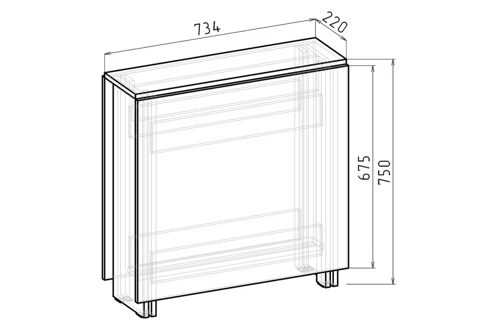 1570х735х750 мм
