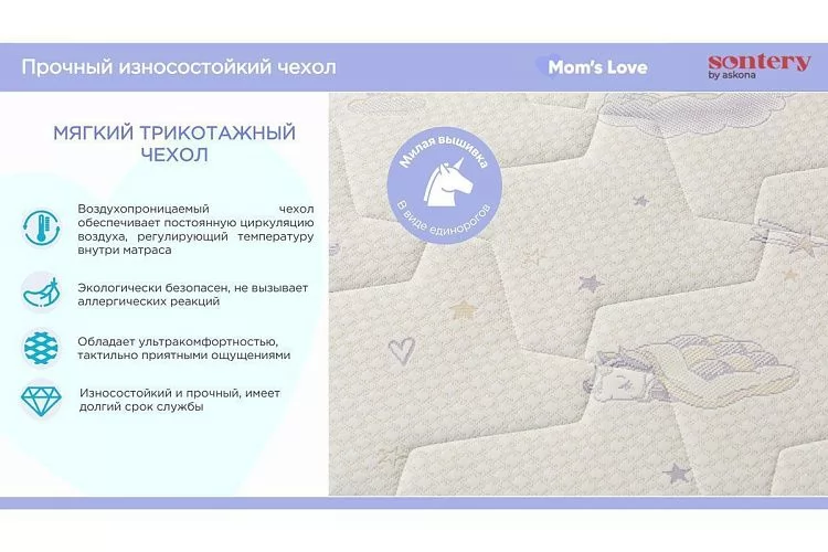 Матрас MOM'S LOVE Junior 600*1200мм (кокос, тритажный чехол, жесткий h 7,5см)