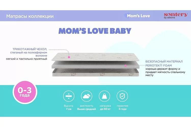 Матрас MOM'S LOVE Baby 600*1200мм (материал Periotek Form, чехол хлопок, жёсткий, h7см) в Советском