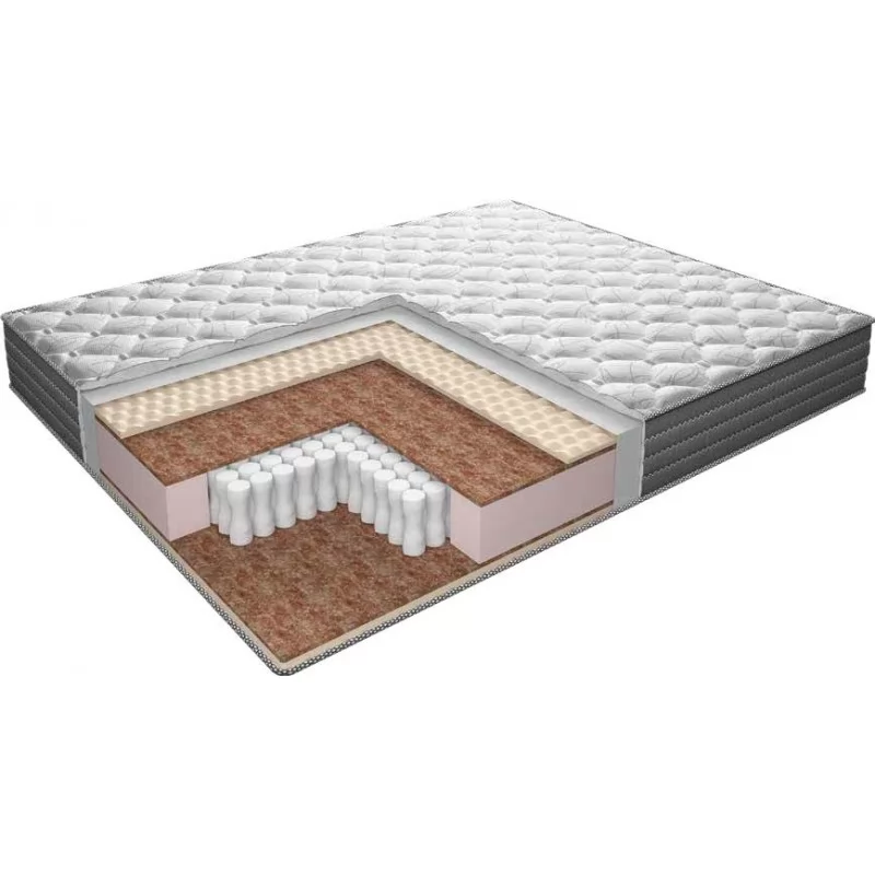 Матрас на основе блока независимых пружин «Грация» Основной наполнитель: ортопедическая пена и упругое полотно. Комбинированный би-кокос является гипоаллергенным материалом и придает матрасу жесткость. Система комфорта «Basic Plus»: прочное покрытие на гипоаллергенном объемном наполнителе повышенной плотности, обеспечивающее максимальный комфорт во время сна.