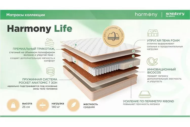 *НаполнениеОртопедическая пена, Кокосовое волокно, Независимый пружинный блок