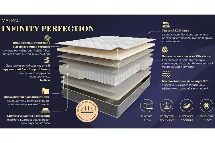 Матрас INFINITY PERFECTION 900*2000мм (Эколатекс/пена/лен, ср. жесткий, h28см) в Советском