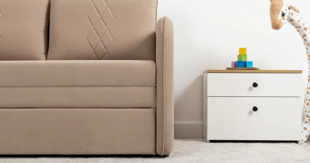 Стильный компактный диван для детской и гостиной. При своих скромных размерах он трансформируется в полноценное спальное место для детей и подростков. Лаконичный дизайн в виде декоративной отстрочки подчеркивает фактуру велюра, а небольшие размеры позволят разместить его в любом пространстве.