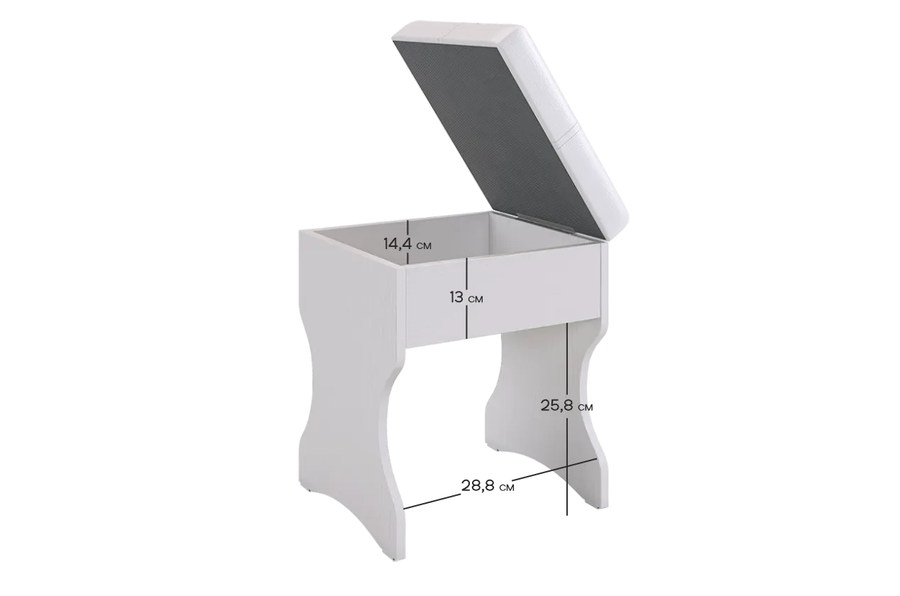 Состоит из: пуф с мягким сидение и дополнительным отсеком под мелочи.