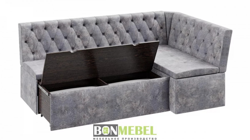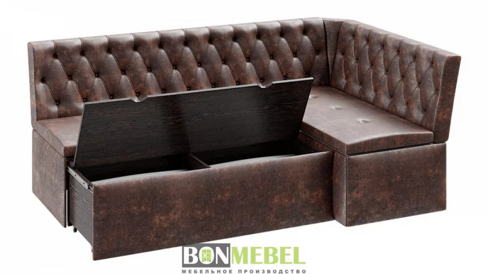 Угловая скамья Квадро тип1 Классик придется по вкусу как поклонникам минимализма так и ценителям роскоши. Спинки изделия декорированы каретной стяжкой и инкрустированы пуговицами, привлекая внимание оригинальным дизайном. Кроме того, уголок оборудован спальным местом, а наличие вместительных ниш для хранения под сидениями придают изделию функциональность.
