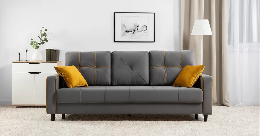 Модные диваны Черри Н порадуют поклонников современного стиля. Контрастные канты, пуговицы и декоративные подушки делают этот диван ярким акцентом интерьера.