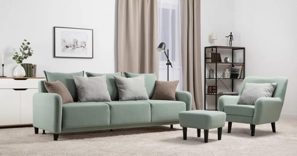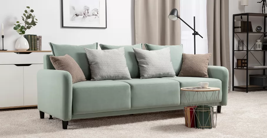 Объемные подушки обеспечивают комфортный отдых. В комплекте 5 двусторонних приспинных подушек и 2 декоративные подушки-думки в ткани букле. Надежный механизм трансформации и ровное спальное место обеспечивают полноценный сон.