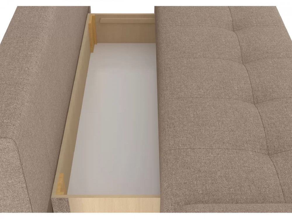 Оригинальный подлокотник с механизмом трансформации уменьшают габариты дивана в сложенном ввиде и организуют рабочцю поверхность в сложенном ввиде.