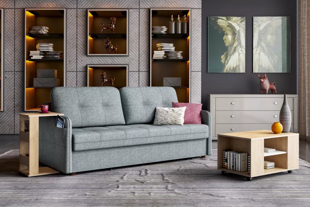 Диваны коллекции «SMART» стильные и современные с лаконичными прямыми формами. Удобный механизм раскладывания "пантограф" не требует отодвигания дивана от стены и работает из стационарного положения дивана. Благодаря небольшим габаритам 2160х1120 м модель идеально подойдет для небольших помещений гостиной или подростковой комнаты. Универсальный дизайн подойдет для любого современного интерьера. В комплекте к дивану можно заказать кресло-кровать или кресло с бельевым ящиком.