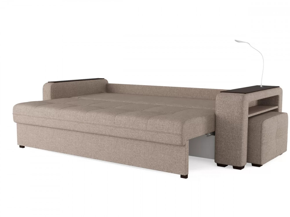 Диван «SMART 4» — это не просто мягкая мебель, а один из ключевых элементов интерьера с обширным функционалом, где эстетика тесно соседствует с комфортом и эргономичностью. Одна боковина оснащена карманом для хранения мелочей и гаджетов, другая боковина совмещает одновременно: рабочую поверхность, за счет широкой накладки, двойной usb - порт и портативную лампу точечного света, которая входит в комплект. Добавить контрастных деталей в интерьер поможет пуф, интегрированный в подлокотник. Этот вариант для современных людей, которые ценят комфорт и удобство отдыха. Мягкое сиденье с легкостью трансформируется в просторное спальное место, на котором смогут утроиться ваши гости. Стильный и уютный, он станет отличным решением, если вы ищите не только красоту, но и комфорт.