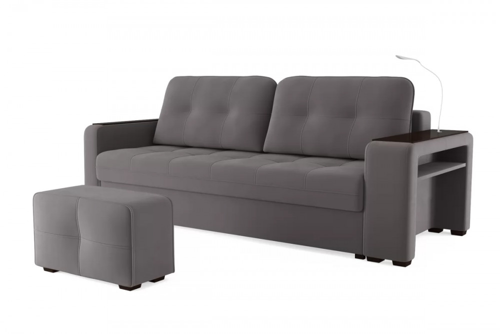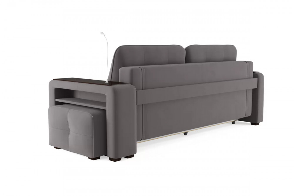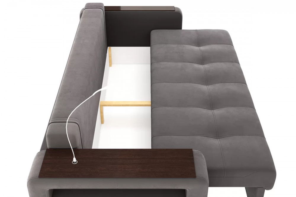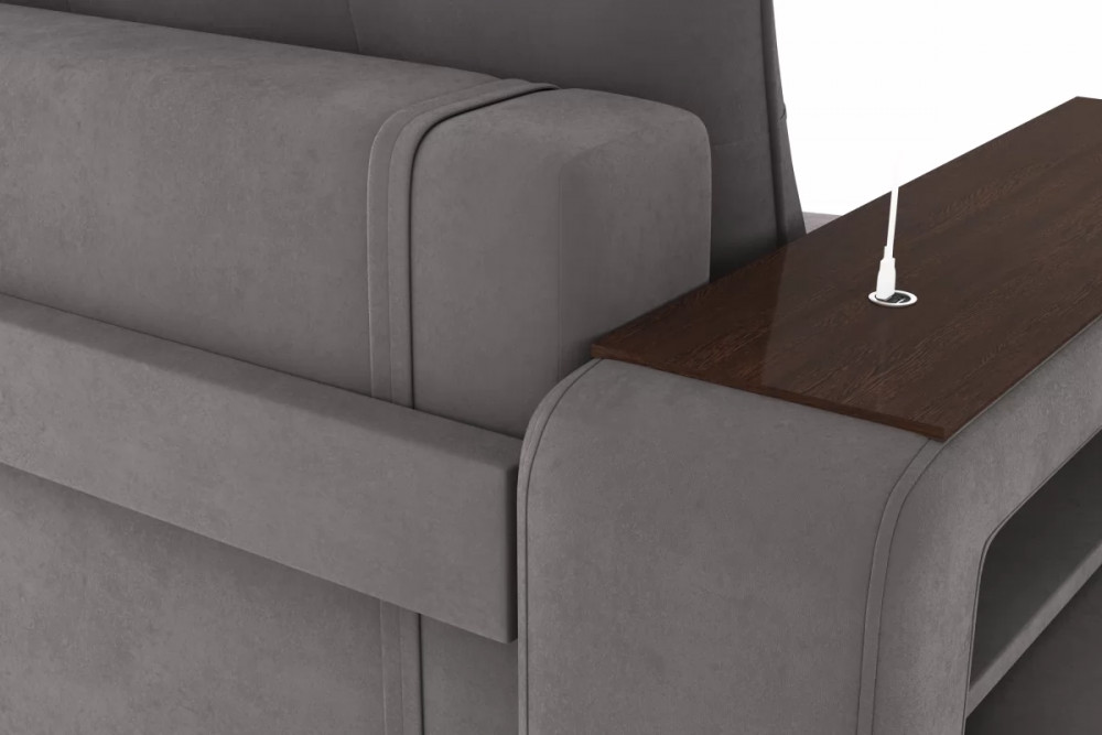 Диван «SMART 4» — это не просто мягкая мебель, а один из ключевых элементов интерьера с обширным функционалом, где эстетика тесно соседствует с комфортом и эргономичностью. Одна боковина оснащена карманом для хранения мелочей и гаджетов, другая боковина совмещает одновременно: рабочую поверхность, за счет широкой накладки, двойной usb - порт и портативную лампу точечного света, которая входит в комплект. Добавить контрастных деталей в интерьер поможет пуф, интегрированный в подлокотник. Этот вариант для современных людей, которые ценят комфорт и удобство отдыха. Мягкое сиденье с легкостью трансформируется в просторное спальное место, на котором смогут утроиться ваши гости. Стильный и уютный, он станет отличным решением, если вы ищите не только красоту, но и комфорт.