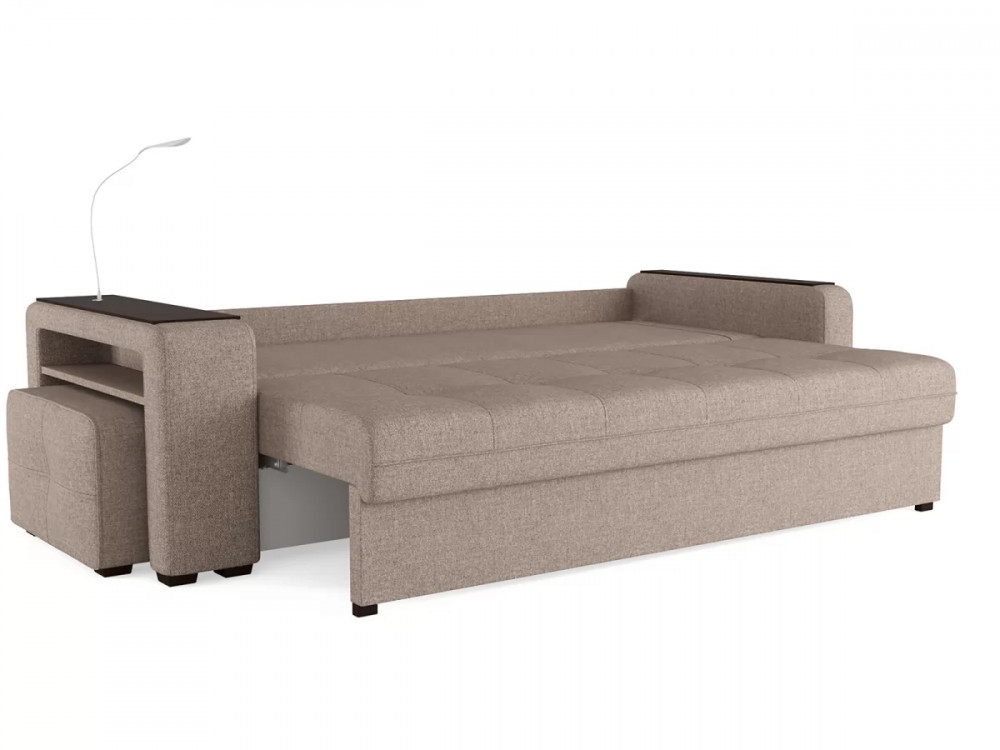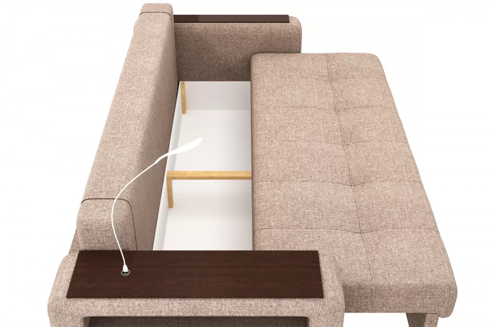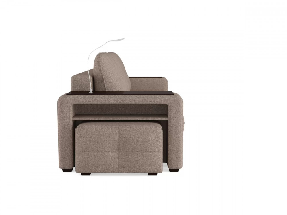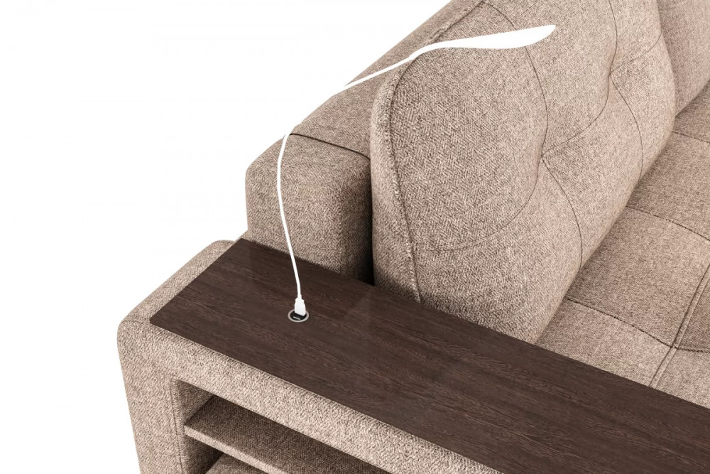 Диван «SMART 4» — это не просто мягкая мебель, а один из ключевых элементов интерьера с обширным функционалом, где эстетика тесно соседствует с комфортом и эргономичностью. Одна боковина оснащена карманом для хранения мелочей и гаджетов, другая боковина совмещает одновременно: рабочую поверхность, за счет широкой накладки, двойной usb - порт и портативную лампу точечного света, которая входит в комплект. Добавить контрастных деталей в интерьер поможет пуф, интегрированный в подлокотник. Этот вариант для современных людей, которые ценят комфорт и удобство отдыха. Мягкое сиденье с легкостью трансформируется в просторное спальное место, на котором смогут утроиться ваши гости. Стильный и уютный, он станет отличным решением, если вы ищите не только красоту, но и комфорт.