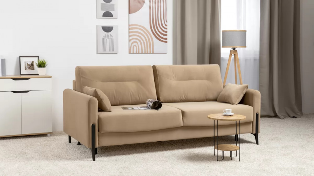 Барселона — современный диван, стиль которого удачно подчеркнут элегантными металлическими опорами. Диван выглядит привлекательно со всех сторон.