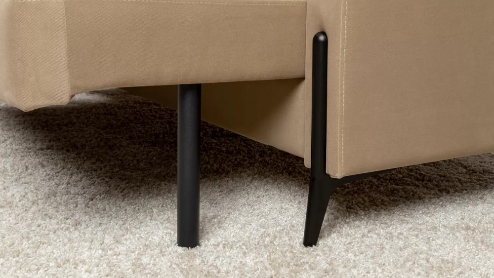 • Металлические опоры плавно переходят в декоративный элемент подлокотника. Декоративная утяжка по приспинным подушкам