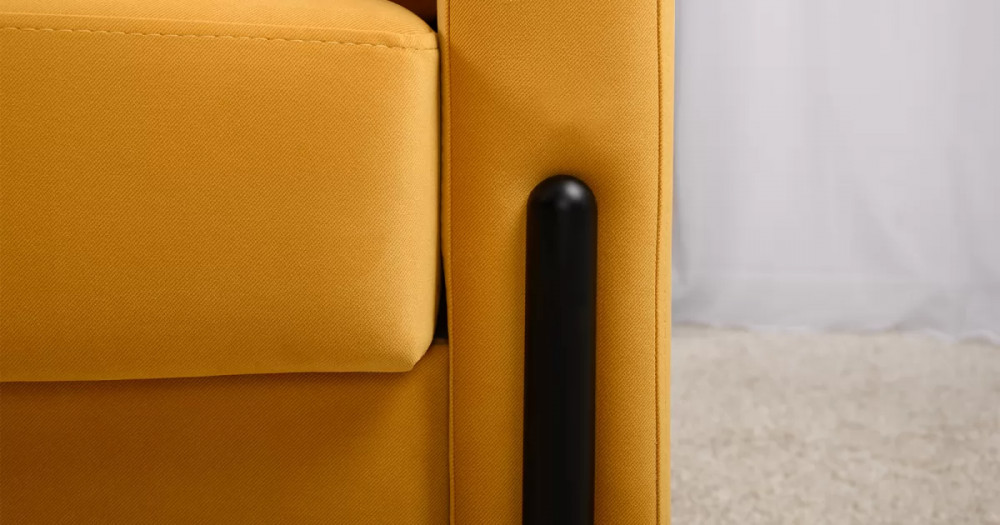 • Металлические опоры плавно переходят в декоративный элемент подлокотника. Декоративная утяжка по приспинным подушкам